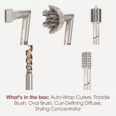 - Auto-Wrap Curlers - Coanda Technology creates effortless curls in seconds, with two attachments for curling in both directions.