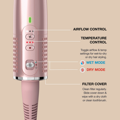 Shark Beauty Glossi 2-In-1 Hot Tool & Air Glosser Lychee combines heat-controlled ceramic plates with powerful airflow to smooth, stretch and shape all hair types without frizz or heat damage. Designed for both wet and dry hair, this versatile tool creates sleek, glossy styles with lasting shine and bounce. Its advanced airflow system and ceramic technology help you achieve a polished finish quickly and easily, giving salon-quality results from home.