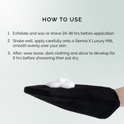 - Using a Sienna X Luxury Mitt, apply mousse evenly to the skin, ensuring a smooth, streak-free finish.