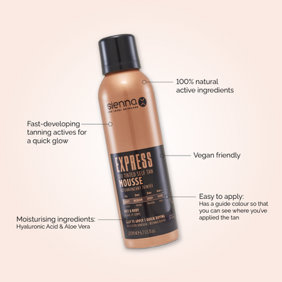 Sienna X Q10 Express Tinted Self Tan Mousse (200ml) is a customisable self-tanning mousse that allows you to tailor your glow to your desired depth. With fast-developing tanning actives, it delivers a natural, streak-free tan after just one hour, while those seeking a deeper finish can leave it on for up to four hours.