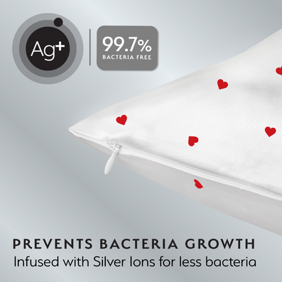 Silver Cloud Satin Pillowcase Heart Print is your key to deep, restorative sleep and a radiant morning glow. This luxurious pillowcase is woven from the softest satin, enriched with natural Silver Ions to enhance your beauty sleep.