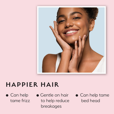 The innovative fabric boasts antimicrobial properties, scientifically proven to eliminate 99.7% of bacteria, thereby minimising acne and skin irritations. The satin's unique, less absorbent surface preserves your hair and skin's natural oils, ensuring your night creams and serums work their magic undisturbed. Cruelty-free & vegan-friendly.