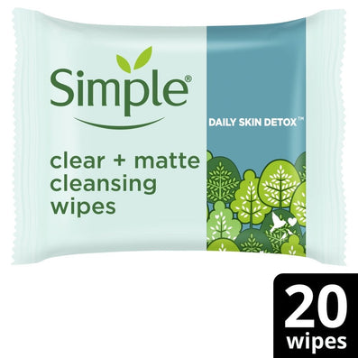 Simple Daily Skin Detox Biodegradable Cleansing Wipes (Pack of 20) are double-sided wipes which gently and effectively cleanse your skin of dirt, makeup and impurities, effectively mattifying the complexion with their oil-free, residue-free formula.