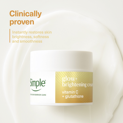 Simple Glow+ Brightening Gel Cream Facial Moisturiser (50ml) is a lightweight, radiance-enhancing cream that helps to revive dull and tired-looking skin for a healthy, luminous glow.