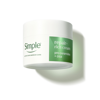 Simple Repair+ Pro-Ceramides Replenish Rich Cream Facial Moisturiser (50ml) is a deeply nourishing moisturiser designed to restore and strengthen even the most sensitive skin.