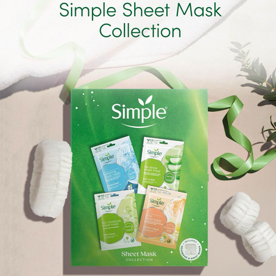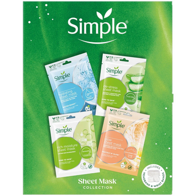 Simple Sheet Mask Collection Gift Set includes four of our favourite sheet masks, two wristbands and a headband.