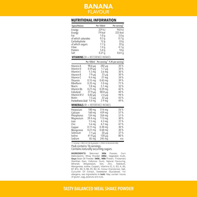 SlimFast Tasty Balanced Meal Powder Banana Tub (16 Servings 584g) offers a convenient and delicious way to support weight loss and long-term weight maintenance. Each smooth, banana-flavoured shake is quick to prepare and packed with 15g of protein, a source of fibre, and enriched with 23 essential vitamins and minerals including Vitamin B6, B12, Magnesium and Zinc.