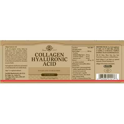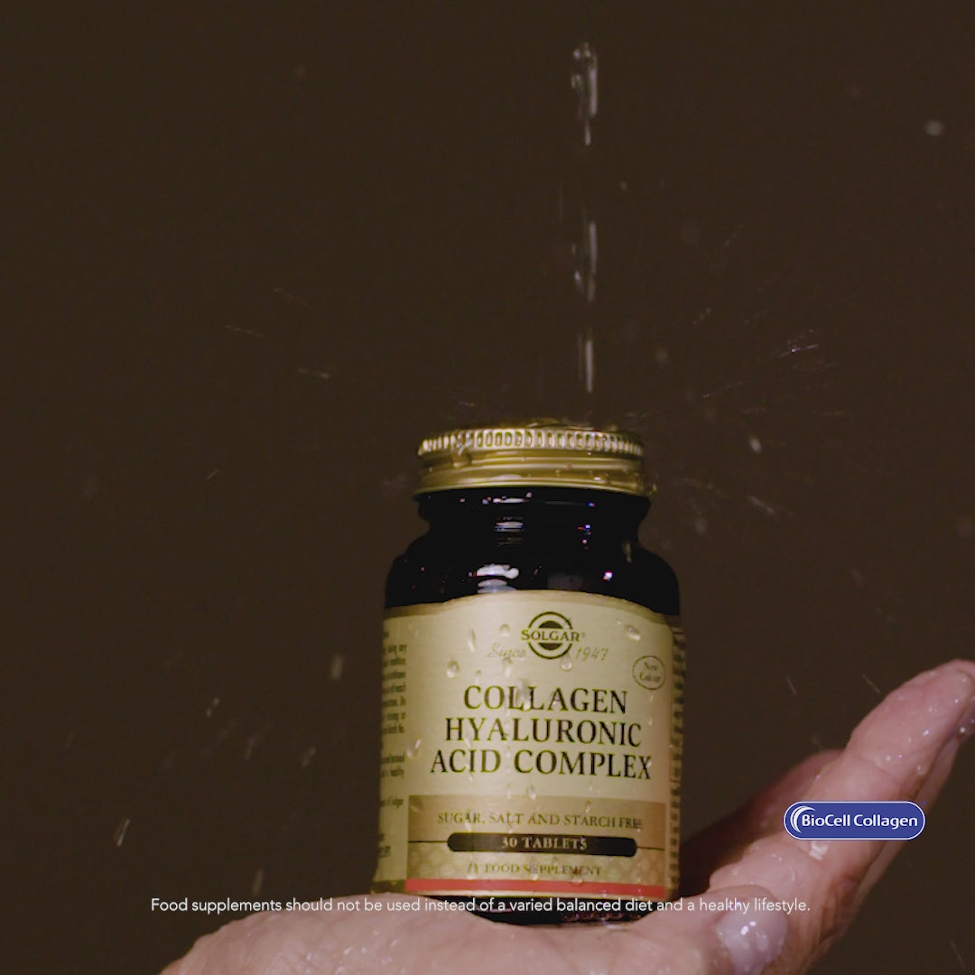 Solgar Collagen Hyaluronic Acid Complex (30 Tablets) is a unique beauty supplement, containing Solgar's patented ingredient BioCell Collagen II, an easily-absorbed form of Collagen, combined with Hyaluronic Acid and Chondroitin.