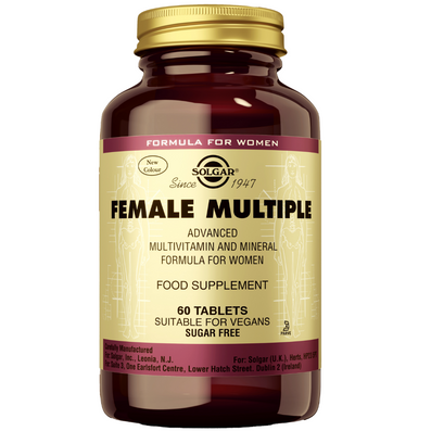Solgar Female Multiple (60 Tablets) is a sugar-free, advanced multivitamin and mineral formula for women. It contains a blend of 27 nutrients, formulated specially for pre-menstrual women.