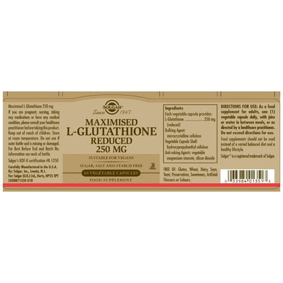 Solgar Maximised L-Glutathione Reduced 250 mg 60 Vegetable Capsules