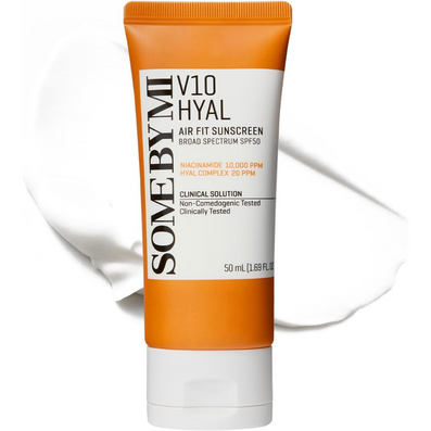 Some By Mi V10 Hyal Airfit Sunscreen SPF50 (50ml) is a mild and safe daily sunscreen that blocks powerful UVA and UVB rays while providing moisturising care with 10 types of Vitamins and Hyaluronic Acid.