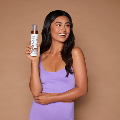 St. Moriz Advanced Colour Correcting Tanning Mousse Dark (200ml) is a lightweight tanning mousse designed with purple undertones to neutralise yellow tones, delivering a natural, radiant finish.