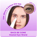 - To use on your lower lid, place the tip of the wand in the corner of your eye beneath your lower eyelashes. Then, gently glide it towards the outer corner of your eye. This should take around 15 seconds from the inner corner to the outer corner, giving time for the wand to heat your skin. Repeat this motion once or twice more, but do not use on the same patch of skin for more than 60 seconds.