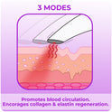 Used together with a cream or serum, all three modes deliver thermo-therapy, using heat to reduce redness and sagging of the skin around the eye. Using the red LED Light stimulates the regeneration of Collagen, promoting firmer skin. Using the vibrations and heating helps to promote increased circulation and reduce red and swollen bags under the eyes.