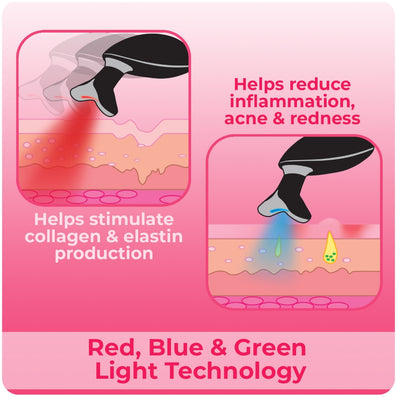 Employing a combination of heat, massage and coloured light technology, this device helps to minimise the occurrence and reduce the appearance of wrinkles, age spots, acne and uneven skin. Providing a choice of three settings offering green, red and blue light therapy, the StylPro Fabulous Firmer minimises the appearance of age spots and other skin pigmentations, prevents oil build-up thus reducing acne and blackheads, and stimulates the production of Collagen to enhance the firmness and elasticity of your skin.