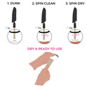 - Simple submerge and spin your brushes in the Vegan Brush Cleanser and lift above the solution, to spin dry in 10 seconds.
