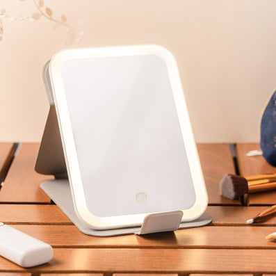 Supplied with a fold-flat protective case which doubles as a vertical or horizontal stand, it has been lined with built-in LED lights for perfect visibility at any time of the day. Select from 3 dimmable light settings - bright, warm and cool - which can be easily selected by pressing and holding. In addition, the mirror is Micro-USB rechargeable (cord is included) removing the need to replace batteries.