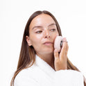 - Using - apply your chosen cleanser to your face or device. Pull up the ring on the back of the device and place your middle finger through. Short press the On/Off Button to turn on the device. Two blue LED lights will flash twice once the device is on. To increase the sonic vibrations short press the '+' Button next to the On/Off Button. To decrease the sonic vibrations shore press the '-' Button next to the On/Off Button. Once you have chosen your preferred vibration setting, gently glide the brush over the skin in small circles on your forehead, nose, cheeks and chin. Once you have completed your treatment, short press the On/Off Button to turn off the device. Rinse your face well and apply your moisturiser to your face.