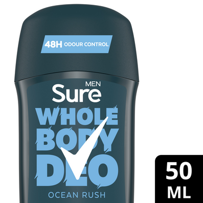 Sure Men Whole Body Deo 48h Ocean Rush Deodorant Stick (50ml) provides long-lasting odour control wherever you need it most. Infused with a herbal, woody scent, it delivers a dynamic, clean, and fresh experience while adapting to your body's unique microbiome for effective all-over freshness.