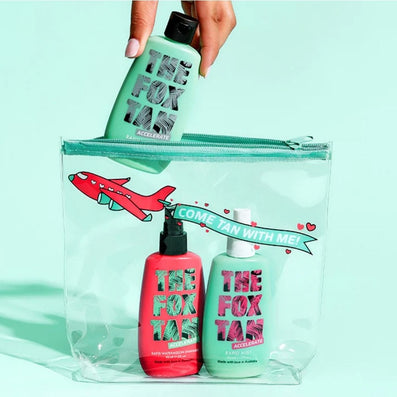The Fox Tan 3 Piece Jet Setter Travel Pack is a bundle of The Fox Tan tanning products presented in a cute zippy pouch for your sunshine vacation.