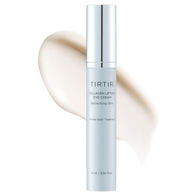 TirTir Collagen Lifting Eye Cream (15ml) is specially formulated to rejuvenate the delicate eye area. Enriched with 10,000ppm of Plant-Derived Collagen Complex, it delivers essential nutrients and a firming effect. The cream is infused with five types of Peptides, Niacinamide, and Adenosine, enhancing skin elasticity, brightening the under-eye area, and reducing wrinkles.