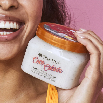 Tree Hut Shea Sugar Scrub Coco Colada (510g) is a tropical exfoliator designed to reveal soft, glowing skin with the vibrant, summery scent of Coco Colada, bursting with notes of Coconut, Pineapple and Coconut Milk.