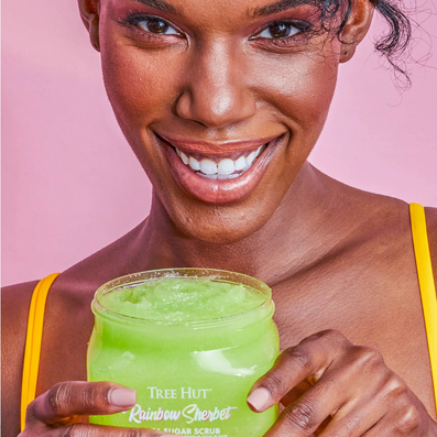 Tree Hut Shea Sugar Scrub Rainbow Sherbet (510g) is a playful exfoliator designed to reveal soft, glowing skin with the sweet, tangy scent of Rainbow Sherbet, bursting with juicy notes of citrus and sugar-spun treats.