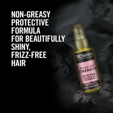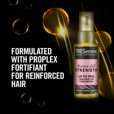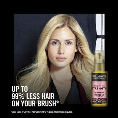 TRESemme Beauty-Full Strength Grow Long Serum (50ml) is a professional-level, non-greasy oil serum for use on damaged hair which penetrates inside the hair fibre, effectively reinforcing its structure from within and resulting in up to 99% less hair on your brush.