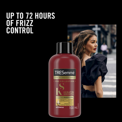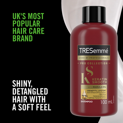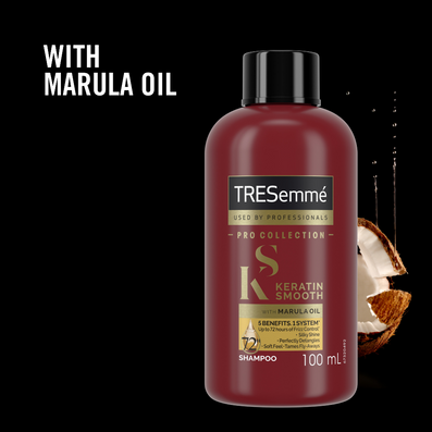 TRESemme Keratin Smooth Shampoo (100ml) has been formulated with Keratin and Marula Oil to deliver long-lasting shine and smoothness.