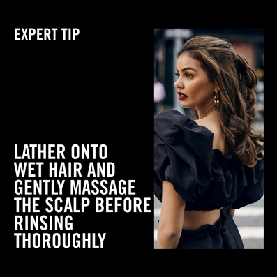 - Apply a generous amount to wet hair, gently massage the scalp and roots with fingertips to work into a lather.