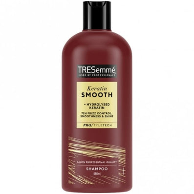 - 1 x TRESemme Keratin Smooth Shampoo (680ml) - has been formulated with Keratin and Marula Oil to deliver long-lasting shine and smoothness. Hydrolysed Keratin provides 72 hours of effective frizz control, minimising tangles and flyaways whilst combatting the negative effects of humidity for a style that lasts all day long. Cruelty-free.