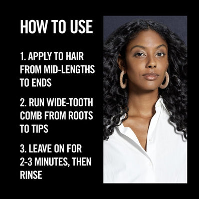 - Run a wide-toothed comb or your fingers from roots to ends to detangle and fully coat hair. Leave on for 2-3 minutes and rinse thoroughly.