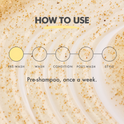 - Massage gently into the scalp, focusing on roots, areas of build-up and dryness.