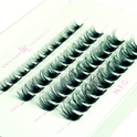 - Gently clamp natural lashes with the cluster using tweezers to lock them in place.
