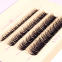 - Gently clamp natural lashes with the cluster using tweezers to lock them in place.