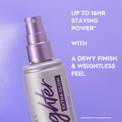Urban Decay All Nighter Long Lasting Makeup Setting Spray Extra Glow (118ml) is a lightweight, long-lasting setting spray infused with Hyaluronic Acid and Agave Extract to give the complexion a fresh, dewy glow. It locks makeup in place for up to 16 hours, helping your look stay smooth, radiant and flawless throughout the day.