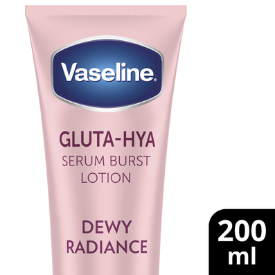 Vaseline Gluta-Hya Dewy Radiance Serum Burst Lotion (200ml) is a lightweight, fast-absorbing body moisturiser formulated to boost skin's natural radiance.