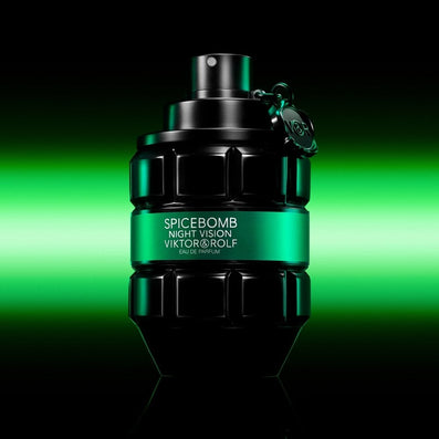 This EDP opens with electric Lemon combining with the freshness of a black spices complex blending Black Pepper, Black Chilli, Nutmeg and Clove. This leads on to an aromatic heart, both dark and vibrant, in which Rosemary and Coriander support aromatic Clary Sage. The fragrance culminates in a sensual and rich base of Incense. Fir Balsam intensifies the woody, warm element. Taking inspiration from the green light of Night Vision technology, the fragrance is presented in the iconic Spicebomb grenade bottle, fashioned from black glass, restrained by an emerald green strap .