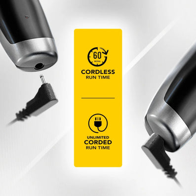 - Cord/Cordless - cordless capability enables maximum manoeuvrability when cutting hair. Up to 60 minutes of cordless use on a full charge with the option to use on the cord if the battery starts to run low.