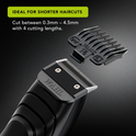 - Three close cutting combs (1.5mm-4.5mm) for customised lengths.