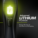 - 120 minutes cordless runtime from a 3-hour charge with Lithium-Ion battery.