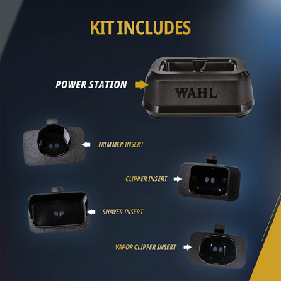 Wahl Professional Single Power Charge Station is a smart, space-saving solution designed to keep your cordless tools fully charged and ready for action. Featuring a sleek, compact design, this versatile charging dock includes four interchangeable inserts, allowing you to customise the port to suit your specific Wahl Professional Clippers, Trimmers or Shavers, including the latest Wahl Vapor™ Clipper.