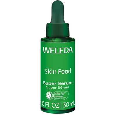 - 1 x Weleda Skin Food Super Serum (30ml) is an intensive treatment enriched with Hyaluronic Acid, Ceramides and Weleda's Skin Food phyto-infusion to instantly hydrate, strengthen the skin barrier and boost natural radiance. This vegan formulation, crafted with 100% natural origin ingredients, delivers a supercharged moisture hit while nourishing and revitalising dull or dry complexions. The lightweight formula features Skin Food's signature botanicals, including extracts of organic Calendula, Chamomile and Rosemary, alongside skin-smoothing Viola Tricolour. A blend of organic plant oils such as Sunflower Seed, Apricot Kernel and Jojoba works in harmony to replenish and protect, while Ceramide NP and Hyaluronic Acid provide lasting hydration. Gentle yet powerful, it leaves skin softer, more supple and glowing with health. Cruelty-free & vegan-friendly.