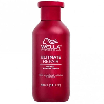 - 1 x Wella Professionals Ultimate Repair Shampoo (250ml) - a rich, lightweight and creamy formula which effectively cleanses all hair types, repairing, moisturising and strengthening. Enriched with AHA's and Omega-9, this shampoo rebuilds bonds within the hair whilst replenishing the external barrier of the hair fibres. Formulated with Metal Purifier technology, it banishes impurities which can be harmful to the hair including metals, product build-up, oils, dirt and pollution. The shampoo detoxifies and rebuilds heat and bleach-damaged hair inside and out, leaving it looking healthy, shiny and smooth. Dermatologically tested. Cruelty-free & vegan-friendly.