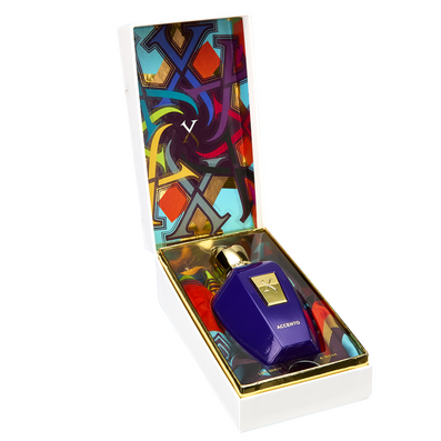 The composition opens with a fruity floral combination of top notes with fresh Pineapple and Hyacinth whilst a refined heart of fragrant Jasmine, Iris and spicy Pink Pepper gives the parfum a classy edge. The warmth of the olfactory melange in the base augments this classiness with earthy Patchouli, Amber and Musk completing the mix. Accento is presented with a unique silk neck scarf designed by Xerjoff and produced by famous silk manufacturers in Lake Como.