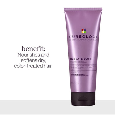 Pureology Hydrate Soft Softening Treatment (200ml) is a gentle, nourishing treatment which increases softness in damaged and colour-treated hair. The luxurious formulation, including Shea Butter and Sweet Almond Oil, is enhanced by an aromatherapy blend of Red Fruits, Rose and Amber.