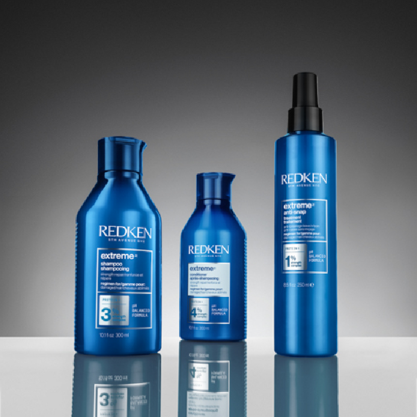 Redken Extreme Strength Shampoo strengthens and repairs damaged hair, helping to reduce breakage. The Redken Extreme Strength Conditioner detangles and fortifies the hair, making it more resilient. For further protection, the Redken Extreme Anti-Snap Treatment targets and prevents additional breakage. Lastly, the Redken Acidic Bonding Concentrate Shampoo and Conditioner are specifically designed to repair and strengthen severely damaged, colour-treated hair by balancing its pH levels.